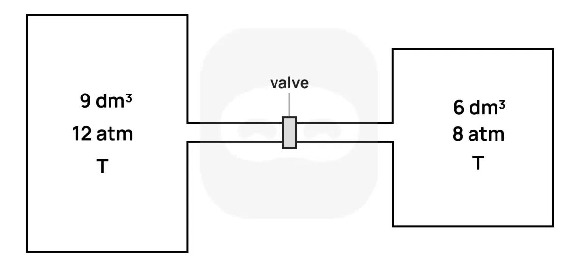 The valve is then opened and the gases are allowed to mix and reach equilibrium. Assume temperature remains constant and the gases are ideal and non-reactive.