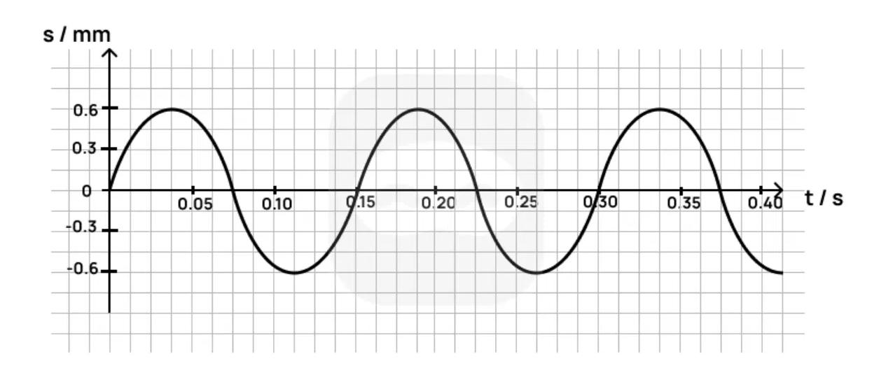 The graph shows the displacement in millimetres of a point on a string as a function of time in seconds.