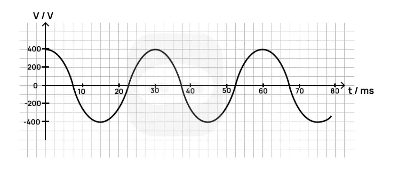 A generator produces a sinusoidal alternating voltage. The graph below shows the variation of the output voltage with time .