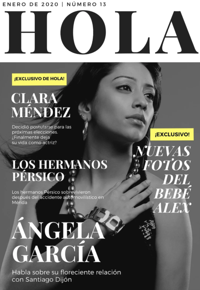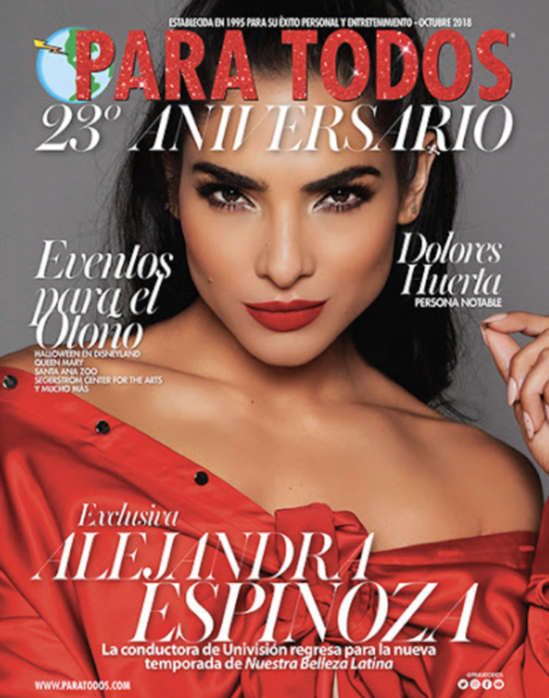 Examina el simbolismo de la presentación de Alejandra Espinoza en la portada. ¿Qué mensaje podría estar transmitiendo la revista?