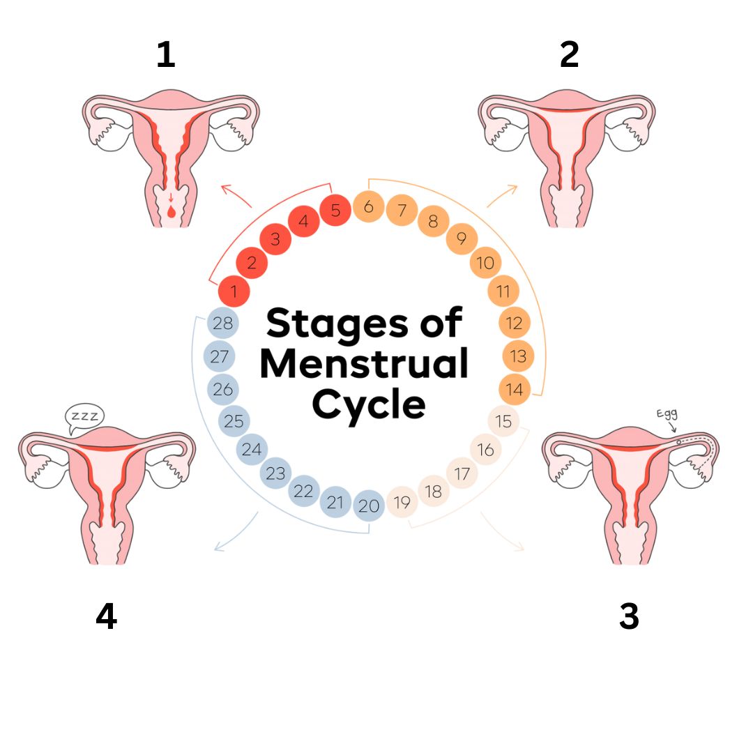 A coach observes delayed recovery and elevated core temperature in a female athlete. Based on the menstrual cycle image, which stage is she most likely in, and what adjustment should be made?