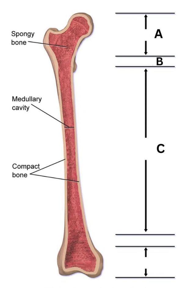 Which of the following correctly identifies the anatomical regions labeled A, B, and C.
