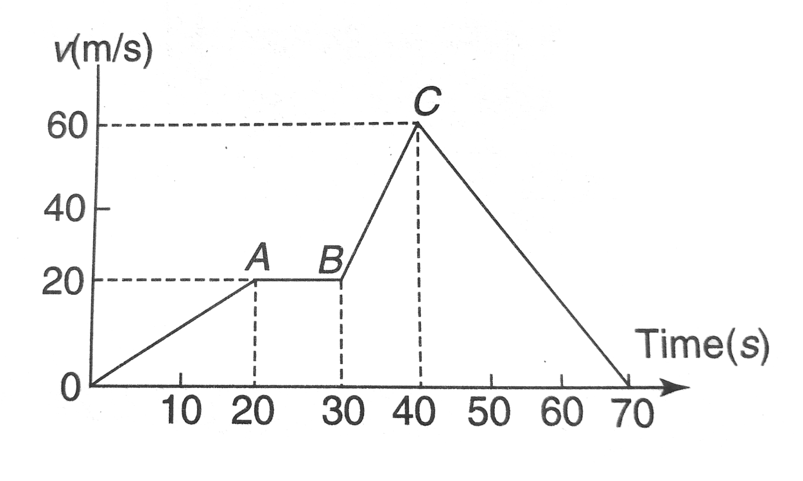 What can be inferred about the direction of acceleration and velocity during after point C?