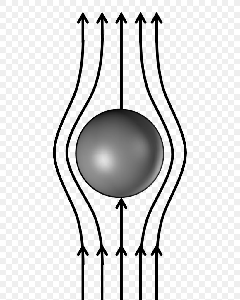 Based on the airflow pattern shown, where would you expect the highest and lowest pressure zones around the ball?