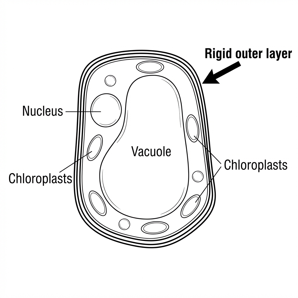 In the diagram, what is the primary role of the rigid outer layer (cell wall)?